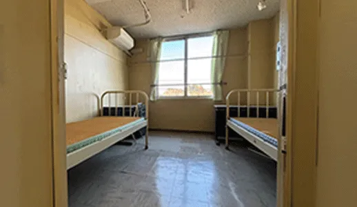 - 1室2名の居室での生活になります。ベッドと机を備え付けてあります。